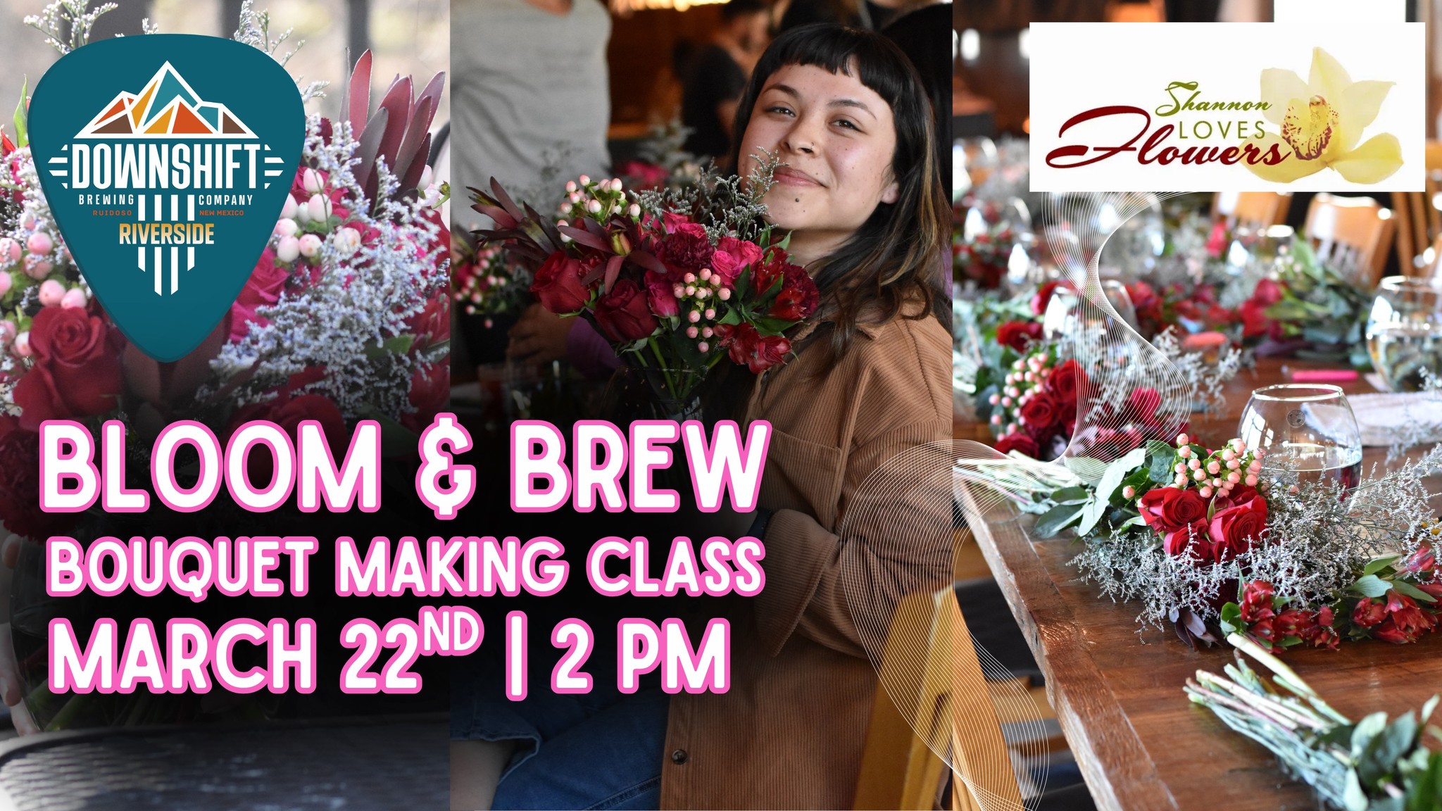 Join us at Downshift Brewing Company’s – Riverside location on Sunday, March 22nd at 2 PM for Bloom & Brew: A Bouquet Making Class in collaboration with Shannon Loves Flowers!